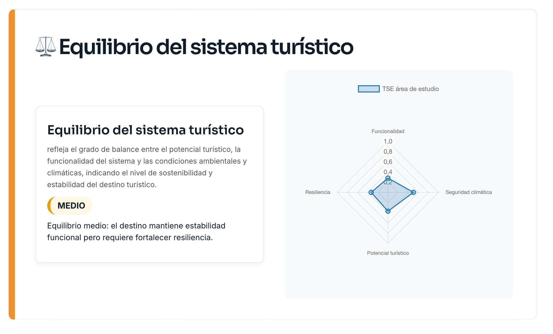 Consulta de forma centralizada los índices de potencial turístico, funcionalidad, vulnerabilidad climática y resiliencia del destino.